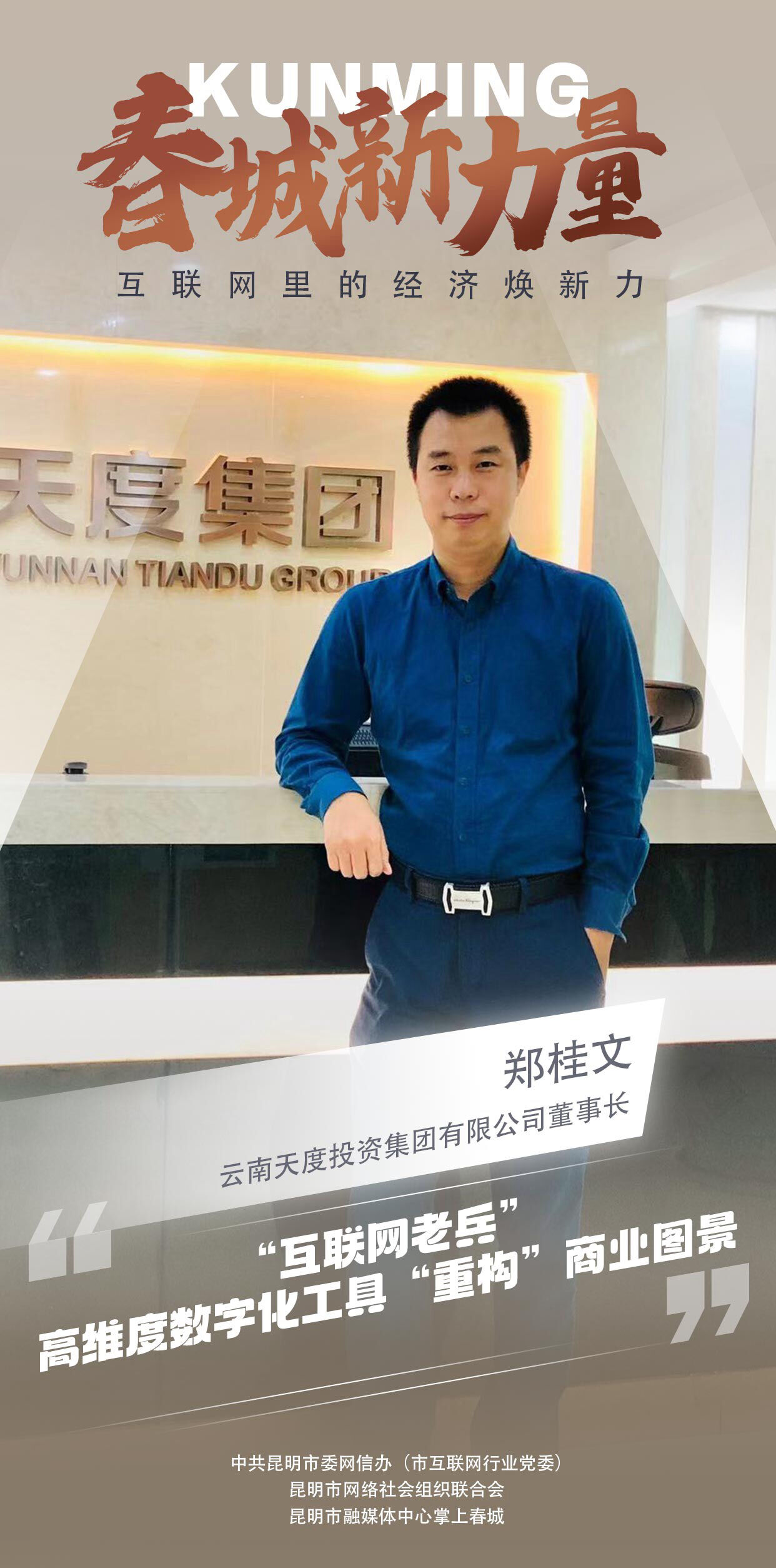 编者按:近年来,昆明市在大数据、人工智能、短视频、直播电商等前沿技术领域涌现出一批优秀企业,突破技术研发,积极实现科技成果转化,推动了昆明市乃至全省的产业升级和经济发展。中共昆明市委网信办(市互联网行业党委)、昆明市网络社会组织联合会、掌上春城推出“春城新力量丨互联网里的经济焕新力”系列报道,发现春城新质生产力,邀请昆明互联网企业,分享企业创业拼搏的历程,生动展示“四季如春营商环境”的温馨春城城市品牌。